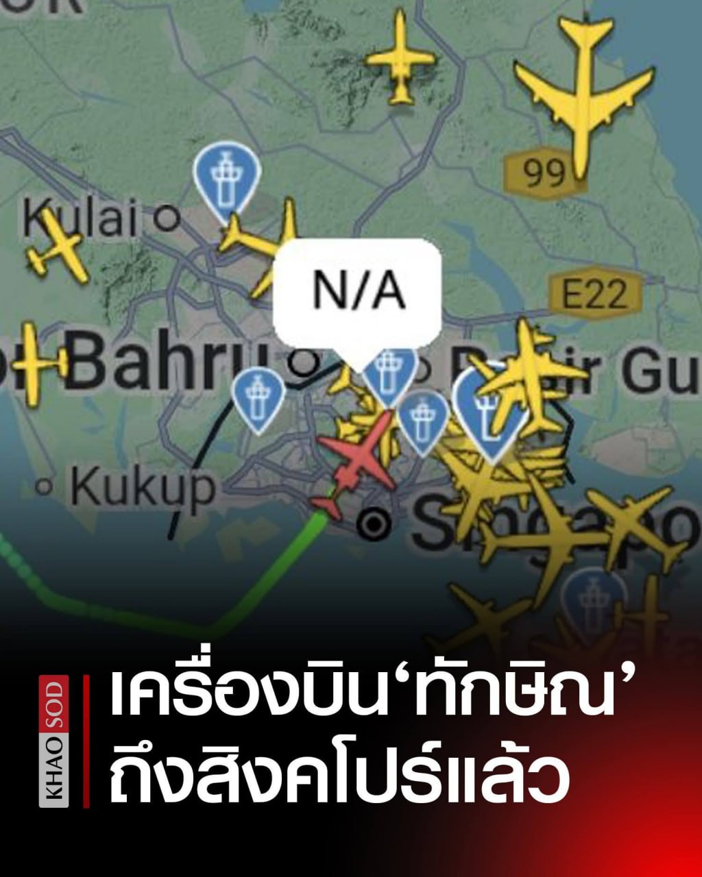 (បាងកក)៖ យន្ដហោះឯកជនរបស់អតីតនាយករដ្ឋមន្ត្រីថៃ លោក Thaksin Shinawatra ដែលបានហោះចេញពីទីក្រុងឌូបៃ ឥលូវព្រឹកនេះបានធ្វើដំណើរទៅដល់ប្រទេសសិង្ហបុរីហើយ នៅព្រឹកថ្ងៃចន្ទ ទី៨ ខែកញ្ញា ២០២៥ ហើយរំពឹងថា លោក Thaksin នឹងធ្វើដំណើរត្រឡប់ទៅកាន់ប្រទេសថៃវិញ ដើម្បីចូលរួមក្នុងស្ដាប់ការប្រកាសសាលក្រមរបស់តុលាការកំពូលជុំវិញសំណុំរឿងបណ្ដឹងរបស់លោកនៅថ្ងៃទី៩ ខែកញ្ញា ឆ្នាំ២០២៥។ នេះបើតាមកាសែតថៃ Khaosod ចេញផ្សាយមុននេះបន្តិច៕