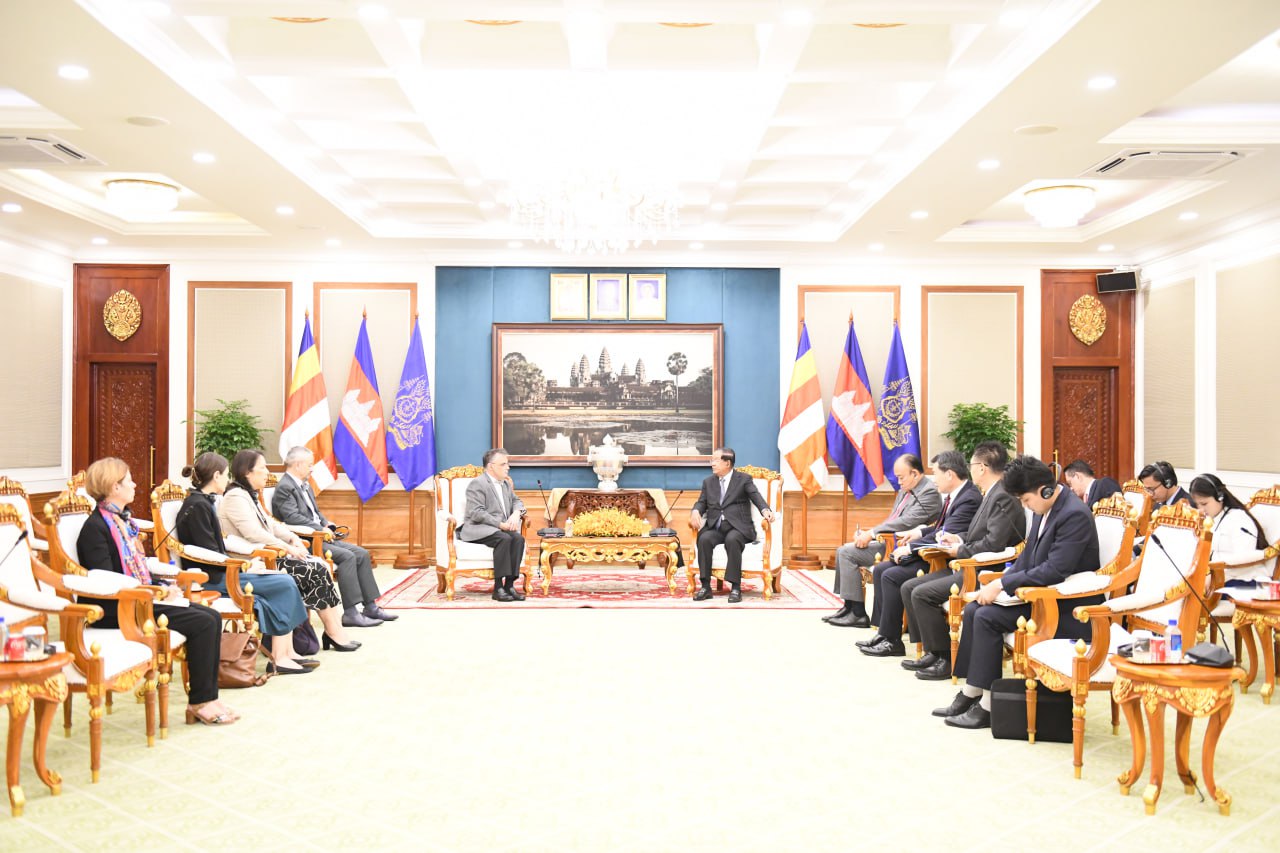 (ភ្នំពេញ)៖ សម្ដេចអគ្គមហាសេនាបតីតេជោ ហ៊ុន សែន ប្រមុខរដ្ឋស្ដីទី នៃព្រះរាជាណាចក្រកម្ពុជា អនុញ្ញាតឱ្យ ឯកឧត្តម អូលីវែរ រីឆាត (Olivier RICHARD) ឯកអគ្គរដ្ឋទូតវិសាមញ្ញ និងពេញសមត្ថភាពនៃសាធារណរដ្ឋបារាំង ប្រចាំព្រះរាជាណាចក្រកម្ពុជា ចូលជួបសម្ដែងការគួរសម និងពិភាក្សាការងារ នៅវិមានព្រឹទ្ធសភា នាព្រឹកថ្ងៃទី១៨ ខែកញ្ញា ឆ្នាំ២០២៥ ៕