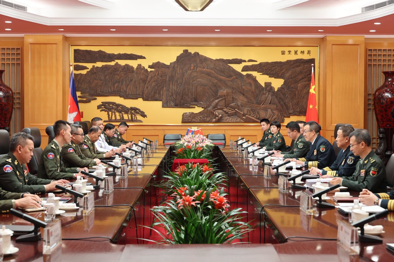 ភ្នំពេញ៖ឯកឧត្តម នាយឧត្តមសេនីយ៍ ទៀ សីហា ឧបនាយករដ្ឋមន្ត្រី រដ្ឋមន្ត្រីក្រសួងការពារជាតិ បានដឹកនាំគណប្រតិភូជាន់ខ្ពស់ នៃកងយោធពលខេមរភូមិន្ទ ជំនួបទ្វេភាគីជាមួយ ឯកឧត្តមនាយឧត្តមនាវី តុង ជីន (Dong Jun) រដ្ឋមន្រ្តីការពារជាតិ នៃសាធារណរដ្ឋប្រជាមានិតចិន ដើម្បីសម្តែងការគួរសម និងពិភាក្សាការងារក្នុងការពង្រឹងទំនាក់ទំនង និងកិច្ចសហប្រតិបត្តិការលើវិស័យការពារជាតិរវាងប្រទេសទាំងពីរ។