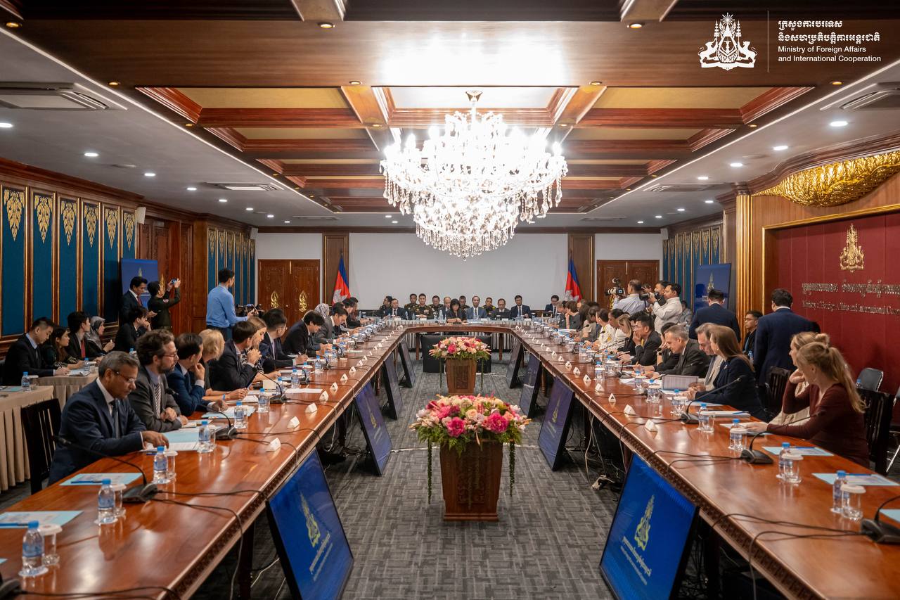 លោកជំទាវ អ៊ាត សោភា រដ្ឋមន្ត្រីស្តីទីក្រសួងការបរទេស និងសហប្រតិបត្តិការអន្តរជាតិ បានដឹកនាំការធ្វើបទបង្ហាញស្តីពីការវិវត្តថ្មីៗនៃបញ្ហាជម្លោះព្រំដែនកម្ពុជា-ថៃ ជាពិសេសនៅតំបន់ភូមិព្រៃចាន់ និងភូមិជោគជ័យ ឃុំអូរបីជាន់ ស្រុកអូរជ្រៅ ខេត្តបន្ទាយមានជ័យ នៅព្រឹកថ្ងៃទី២៥ ខែកញ្ញា ឆ្នាំ២០២៥ នៅទីស្តីការក្រសួង។ បទបង្ហាញនេះមានការចូលរួមពីសមាជិកអង្គទូតបរទេសចំនួន៤៣រូប និងតំណាងទីភ្នាក់ងារអង្គការសហប្រជាជាតិចំនួន៦ ប្រចាំនៅព្រះរាជាណាចក្រកម្ពុជា។