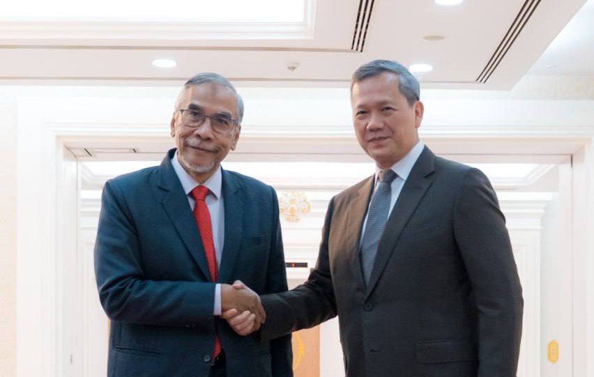 សម្តេចមហាបវរធិបតី ហ៊ុន ម៉ាណែត នាយករដ្ឋមន្ត្រី នៃព្រះរាជាណាចក្រកម្ពុជា បានអនុញ្ញាតឱ្យគណៈប្រតិភូសហព័ន្ធសភាសន្ដិភាពពិភពលោកនៃសភាម៉ាឡេស៊ី (PFWP) ដឹកនាំដោយឯកឧត្តមបណ្ឌិត Mohd Hatta សមាជិកព្រឹទ្ធសភាម៉ាឡេស៊ី ចូលជួបសម្តែងការគួរសម និងពិភាក្សាការងារ នាព្រឹកថ្ងៃទី២ ខែតុលា ឆ្នាំ២០២៥ នៅវិមានសន្តិភាព។