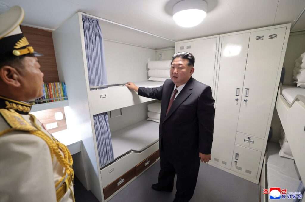 ព្យុងយ៉ាង ៖ មេដឹកនាំកូរ៉េខាងជើង លោក គីម ជុងអ៊ុន បានជំរុញឱ្យកងទ័ពជើងទឹកកូរ៉េខាងជើងប្រុងជើងការត្រៀមប្រយុទ្ធនឹងសត្រូវគ្រប់ពេល អំឡុងពេលចុះទៅពិនិត្យទីតាំងនាវាចម្បាំង Choe Hyon នៅឯពិធីតាំងពិព័រណ៍យោធាមួយកាលពីថ្ងៃទី០៥ ខែតុលា។