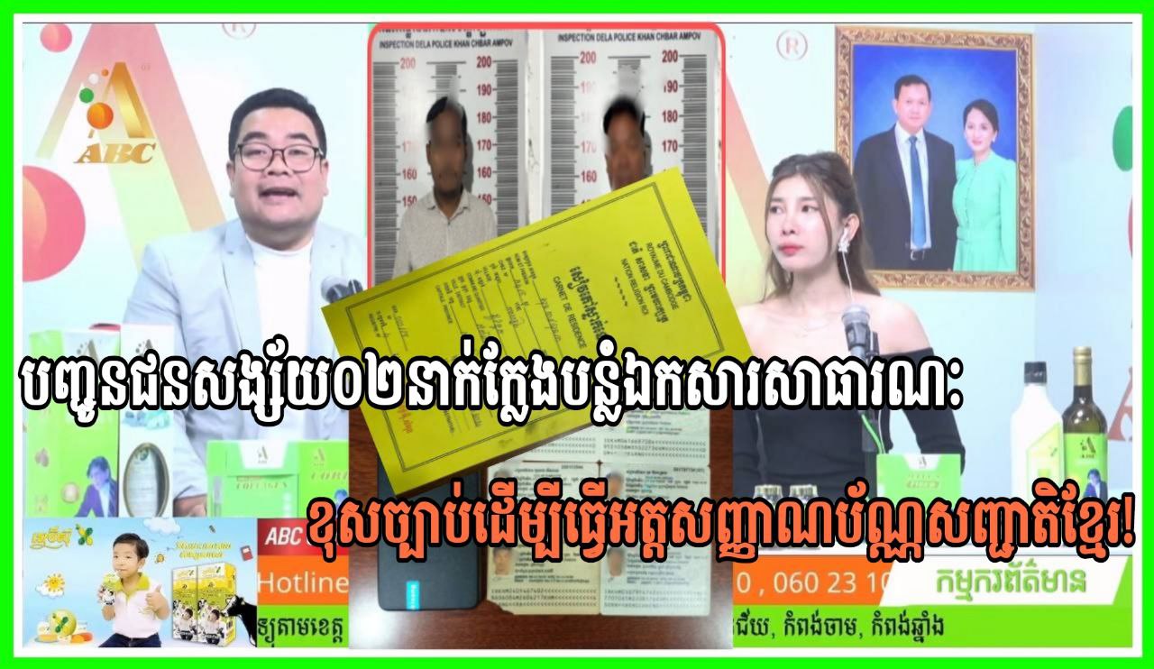 បញ្ជូនជនសង្ស័យ០២នាក់ក្លែងបន្លំឯកសារសាធារណៈ ខុសច្បាប់ដើម្បីធ្វើអត្តសញ្ញាណប័ណ្ណសញ្ជាតិខ្មែរ។ MC: ណារ៉ុង ABC & កញ្ញា គីលូ